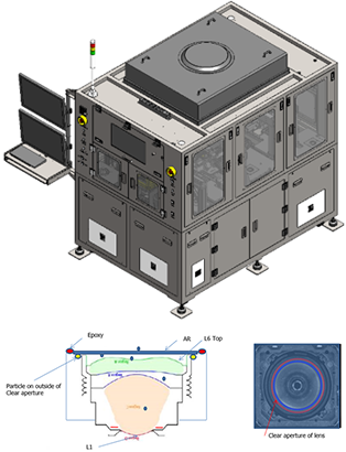 Single Lens Inspection System Lens top, bottom side inspection In Production