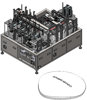 - VR/AR lens top/bottom and side inspection- Particle, black dot, white dot, bubble, scratch, contamination- Using the combination of multi illumination system- Auto NG sorting