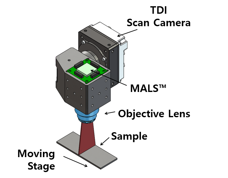 에스디옵틱스의 3D 라인 스캐너는 2D 라인 스캐너와 초고속 z축 가변 초점을 구현하는 당사의 MALS™ 렌즈의 기능을 결합하여 개발한 세계 최초 고속EDoF 2D/3D 라인 스캐너 입니다.
