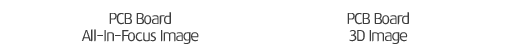 · TDI 라인 카메라의 AREA Mode 사용 (예. 256 밴드) · Z축 제어 없이 반복성, 정확도가 높은 다초점 이미지 촬영· 복합 조명 / 특정 조명을 선택하여 이미지 촬영 · 실시간 3D 이미지 취득· 3D Depth 정보를 활용한 층간 분석 지원